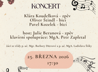 25. března 2026 od 17:30, učebna bicích nástrojů, Zámek 14 Velké Opatovice