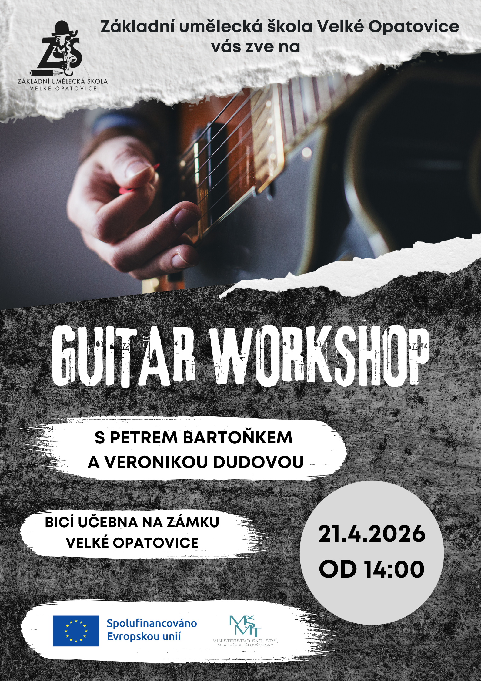 Drums (16.3.) i guitar (21.4.) workshop jsou určeny žákům ZUŠ i zájemcům z dalších základních uměleckých škol, kteří chtějí načerpat nové zkušenosti, inspiraci a posunout své hudební dovednosti dál.